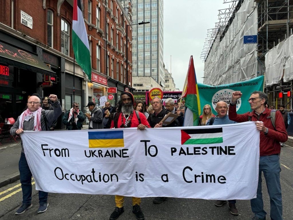 We need to continue to build solidarity with the people of Palestine, on the streets, in our workplaces and by forging direct people-to-people links. We must also maintain our solidarity with the Ukrainian resistance to Russian terror.