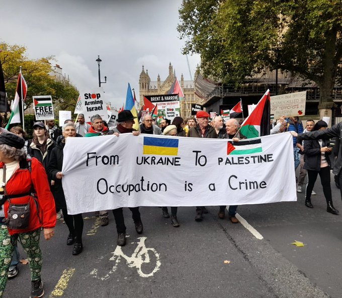 Watching the Israeli targeting civilian infrastructure in Gaza, the Israeli humanitarian blockade and occupation of land resonates especially painfully with us. From this place of pain of experience and solidarity, we call on our fellow Ukrainians globally and all the people to raise their voices in support of the Palestinian people and condemn the ongoing Israeli mass ethnic cleansing…