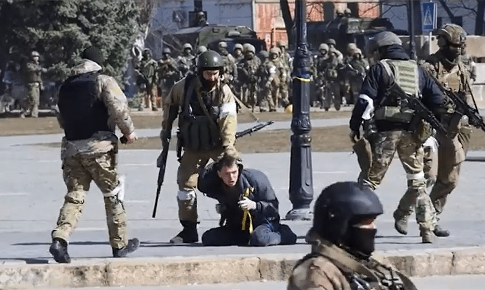Kherson: Russian soldiers attacking a “troops go home” demonstrator